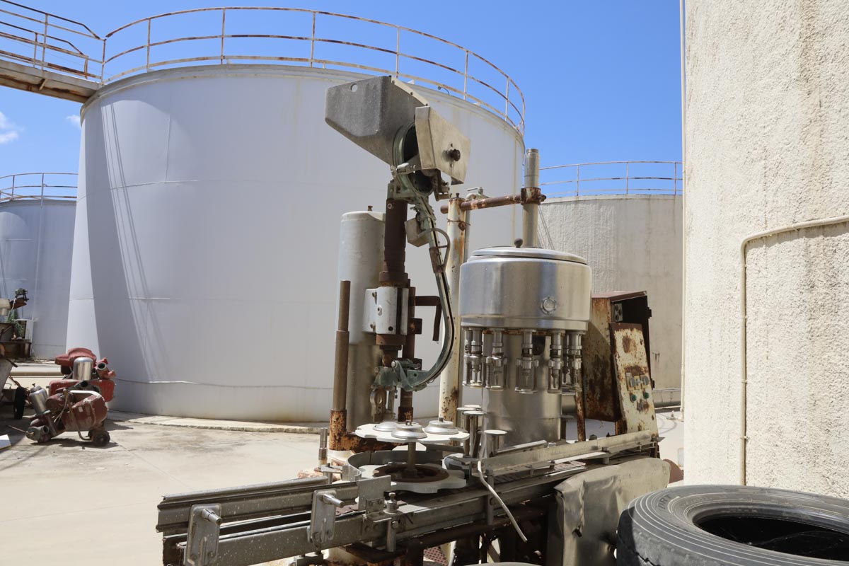 Embouteilleuse en métal avec alimentation et rotation pour 12 bouteilles.